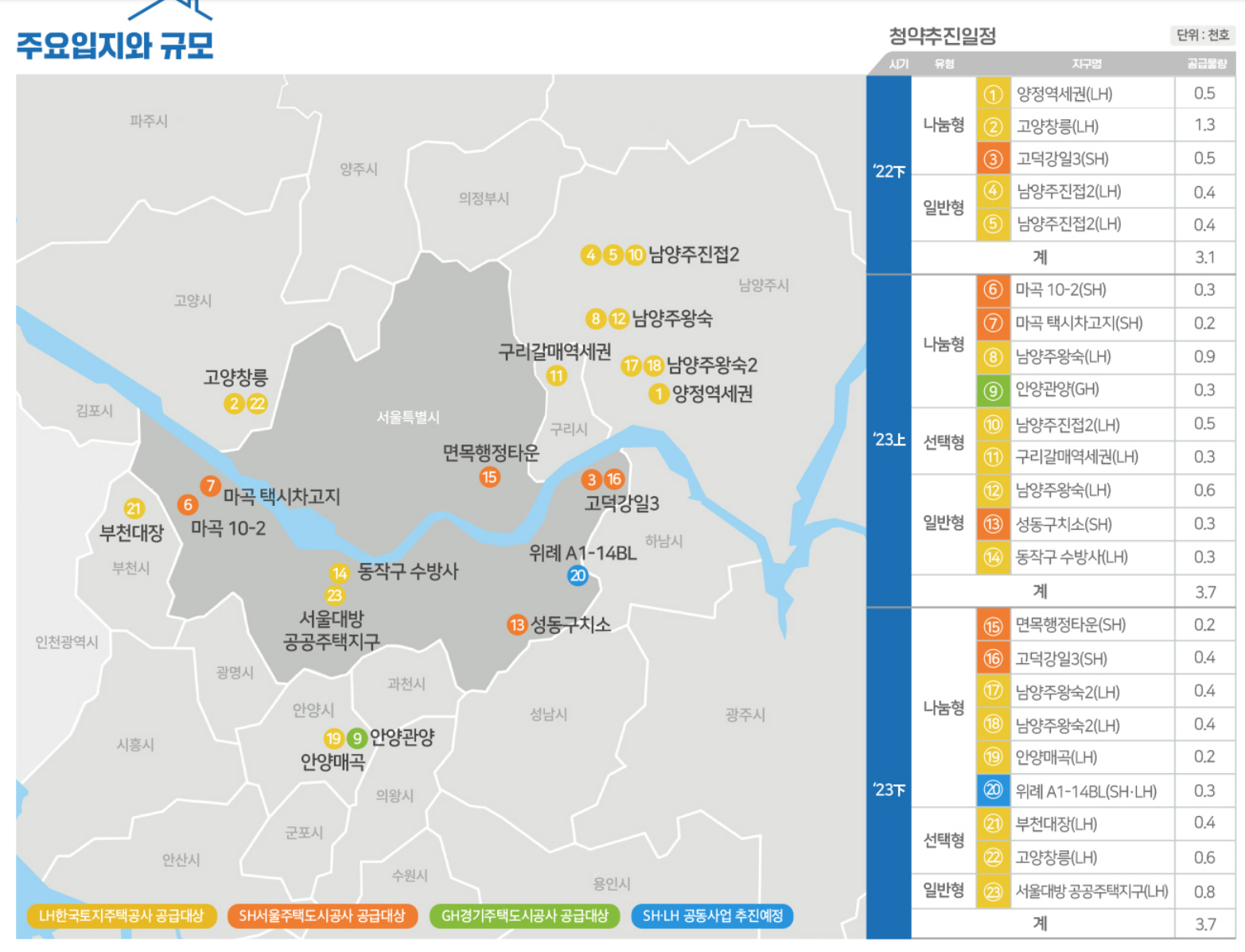 22년부터 23년도 공공분양 주택 사전청약 계획입니다. 관심 있으신 분은 본인에게 맞는 조건이 특별공급인지 일반공급인지를 확인하시고 위 청약 자격을 미리 체크하시면 좋을 것 같습니다.