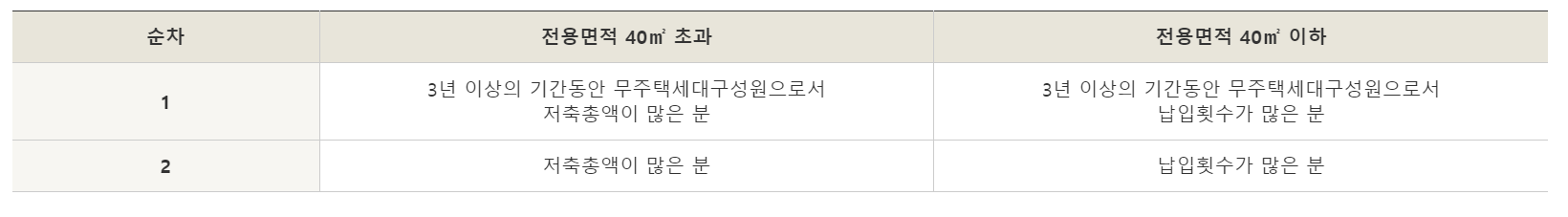 - 수도권의 경우 가입 1년이 경과되어야 하며, 12회 납입 시 1순위가 될 수 있음
