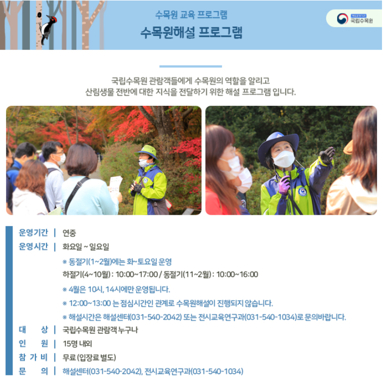 국립수목원은 예전에 광릉수목원이라고 불리기도 했는데요, 경기도 포천에 위치해 있으며 서울에서 가까운 수목원으로 많은 분들이 찾는 장소 입니다.