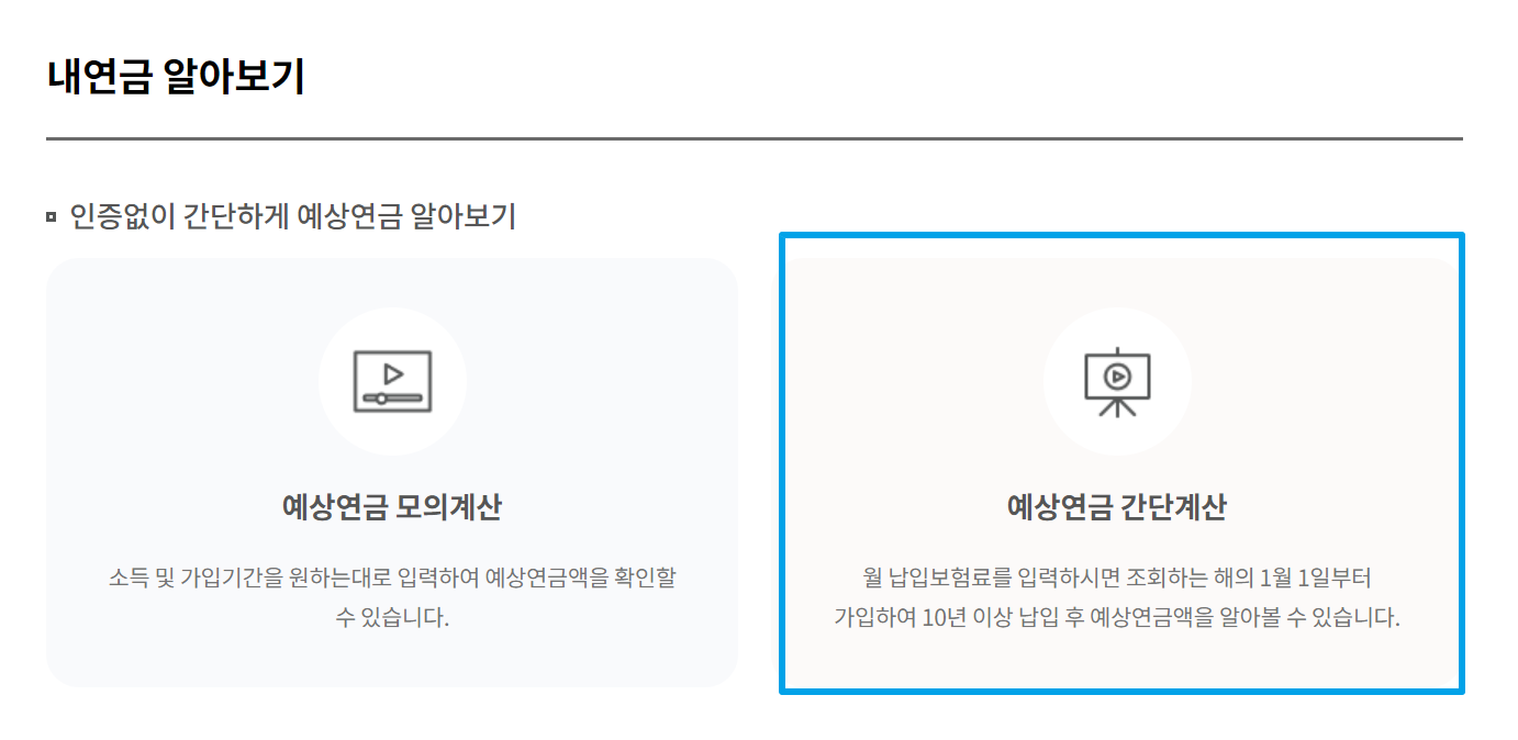 해당 사이트에서는 로그인을 하지 않고서 연금을 체크해볼 수도 있지만 더 정확한 수령액을 확인하기 위해서는 되도록 로그인을 하는 것을 권장 드립니다.