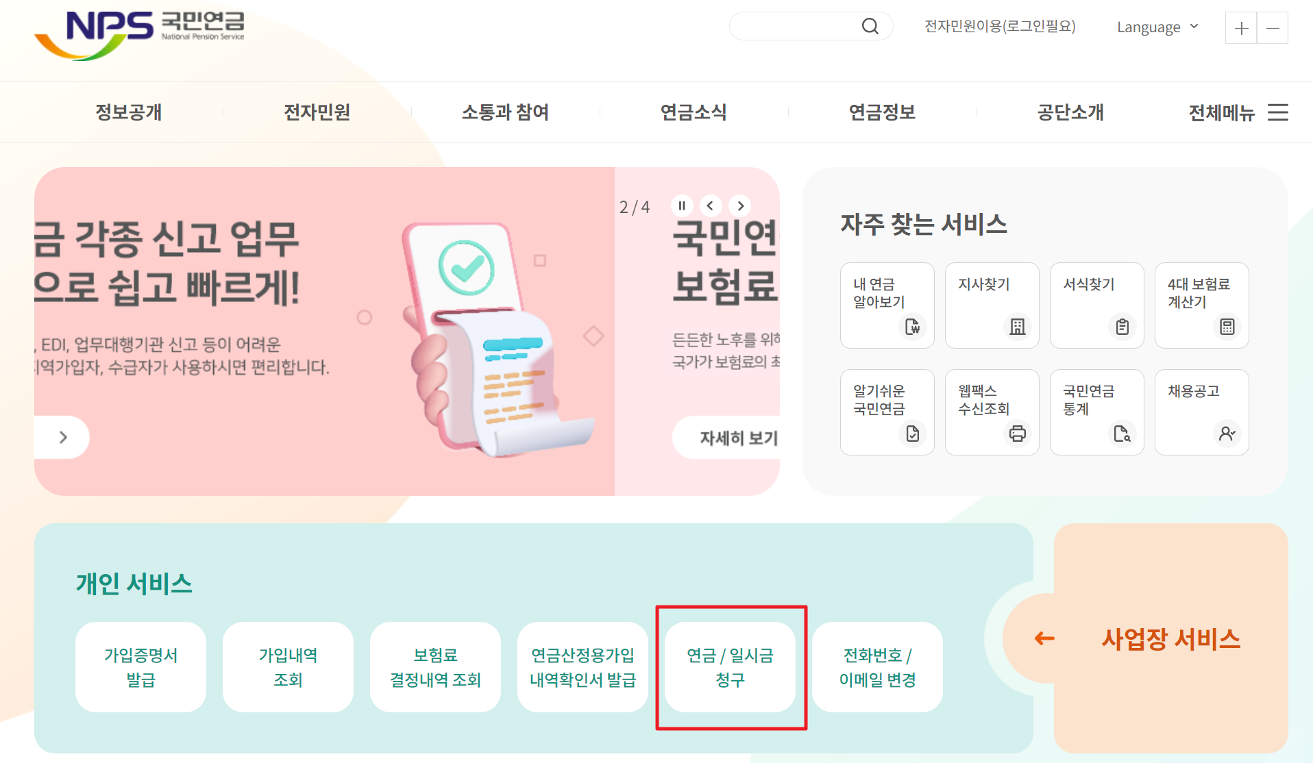 국민연금을 수령받기 위해서는 아래 버튼을 통해 홈페이지에서 신청해야 합니다. 내가 지급개시연령이 되었는데도 불구하고 신청하지 않을 경우 5년 이후 소멸기간이 있으니 꼭 염두하시기 바랍니다.