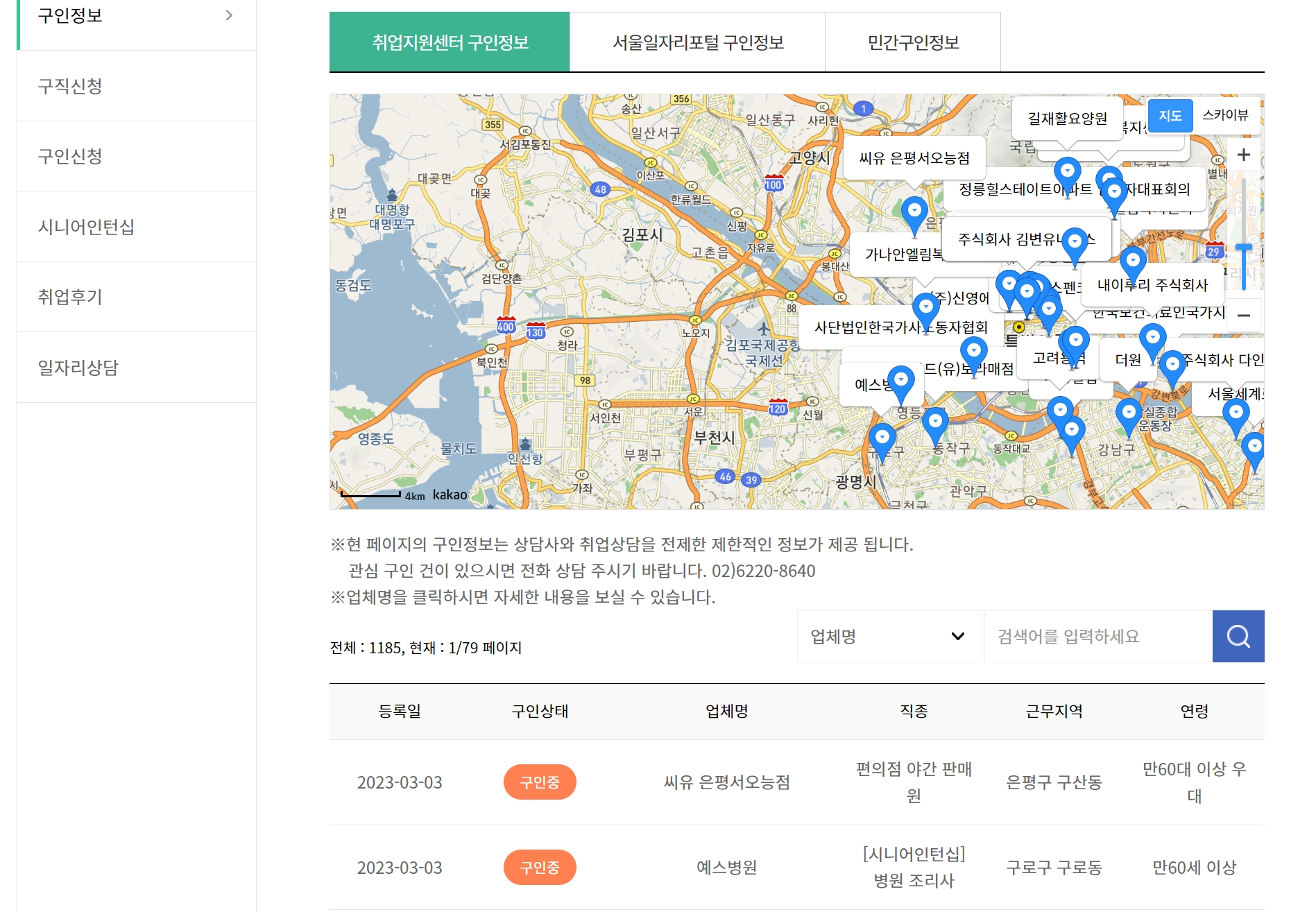 서울시에만 국한되는 것이 다소 아쉬우시다면 중장년을 위한 워크넷 일자리 희망센터를 통해 구직활동도 가능합니다.