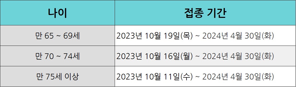 어떤 대상자냐에 따라 무료로 독감주사를 맞을 수 있는 기간이 각각 다르기 때문에 아래 내용 기억하시고 병원에 내원하시길 바라겠습니다.