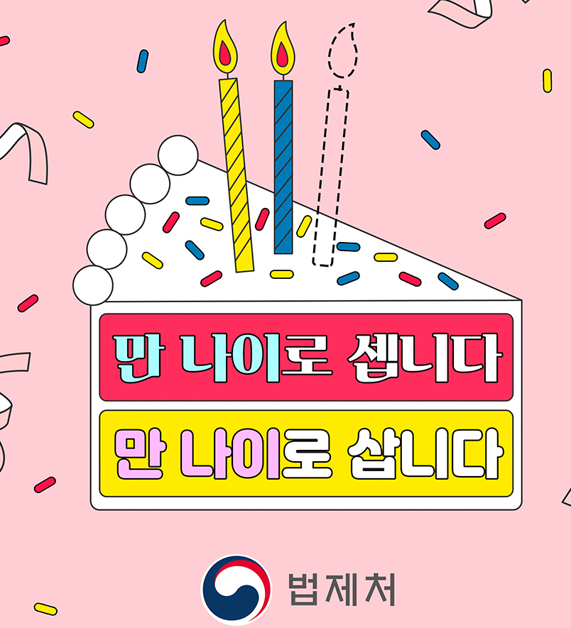 위와 같이 만나이 시행에 따라 많은 사람들이 혼동을 겪고있기 때문에 법제처에서도 이와같은 홍보물등을 제공하고 있습니다. 이 글로 인해 명확하게 확인하시고 알아가시면 좋을 것 같습니다.