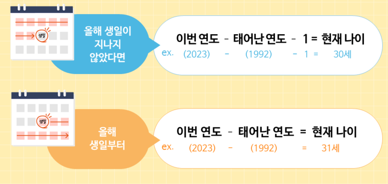 2023년도부터는 만 나이로 계산하면서 모두 한 살씩 적어진 다는 소식 들으셨나요? 오늘은 한국식 나이와 만 나이 등 알아보도록 할 텐데요, 지금부터 이 글을 통해 2023년도 만 나이를 계산하는