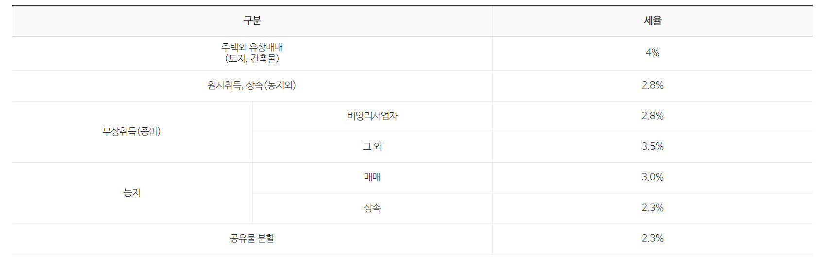 주택 외 부동산 취득세율표