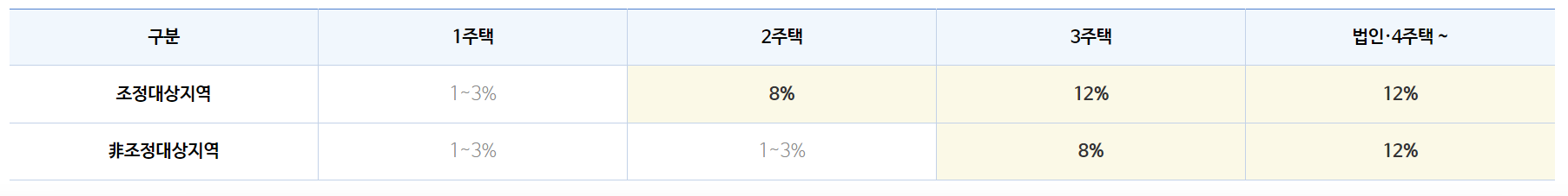 다만 비 조정지역에 1주택을 소유하고 있는 사람이 조정대상지역에 있는 주택을 추가로 취득할 경우에는 8%가 적용되는 점 참고하시기 바랍니다.
