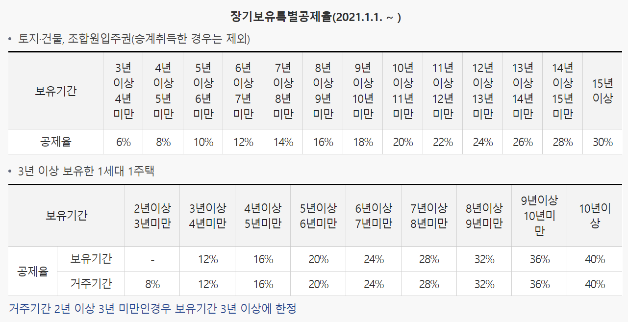 다만 장기로 보유할 경우에는 위와 같이 공제를 받을 수 있는 점 참고하시기 바랍니다.