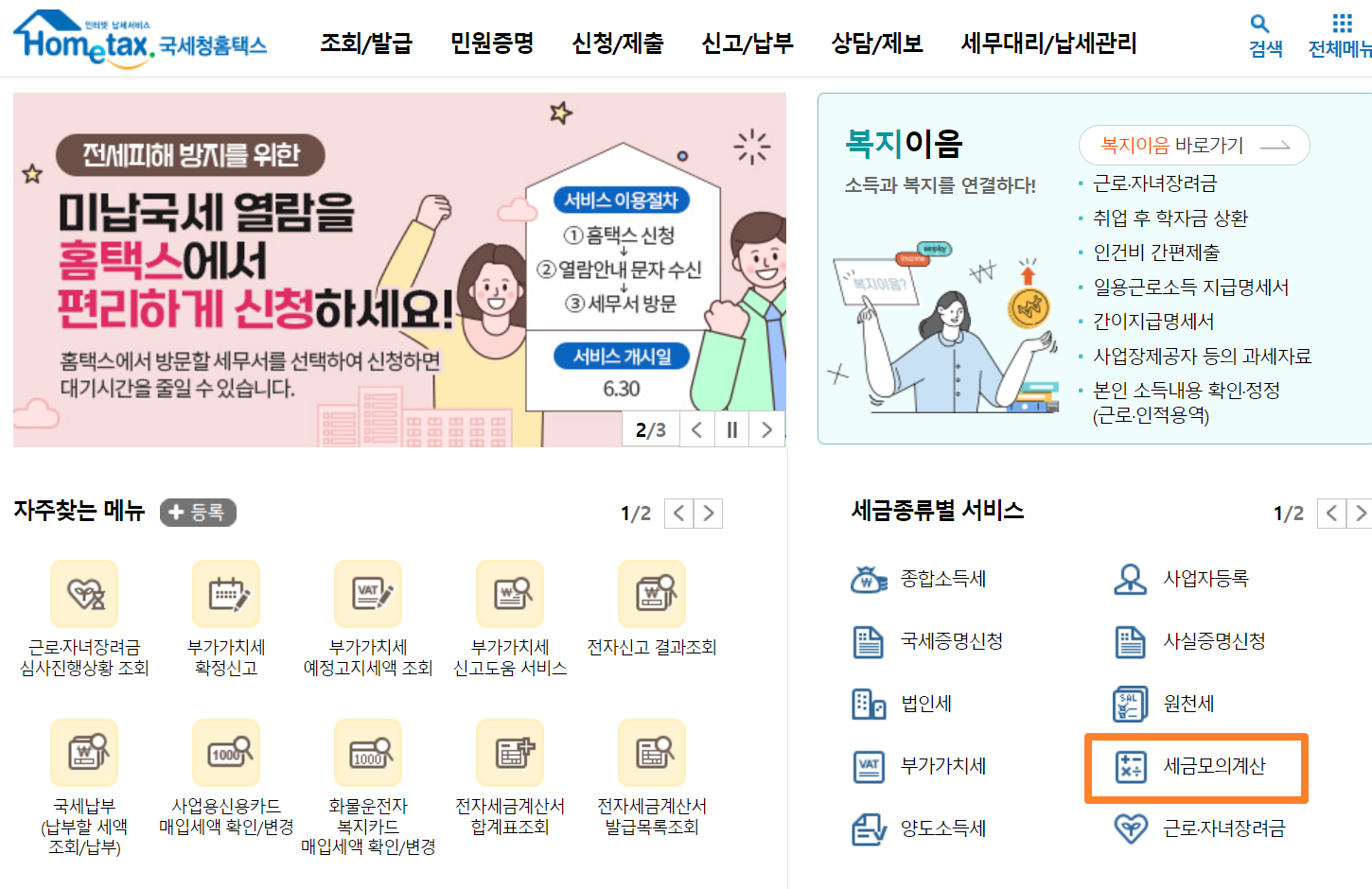 상속세율을 계산하는 방법을 알려드렸는데, 우리는 국세청 홈택스에서 더 간편하게 상속세를 산출할 수 있습니다. 아래 세금을 모의계산하는 홈택스 홈페이지로 바로 이동해보시기 바랍니다.
