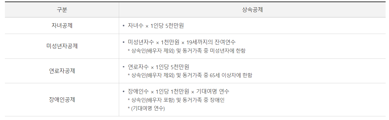 상속세는 상속자와 어떤 관계냐에 따라 공제한도액을 통해 공제됩니다. 지금부터 어떠한 공제가 있는지 체크해보도록 하겠습니다.