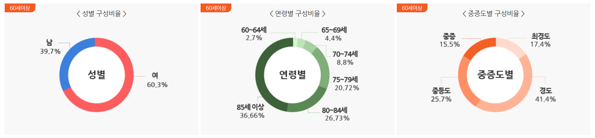 노인성 질환인 치매는 노인 인구 중 많은 사람이 이 질병을 앓고 있습니다. 65세 이상 노인 인구의 거의 10%가량정도로 차지하고 있기 때문에 사회적으로도 많은 지원과 관심이 쏟아지고 있는 실정입니다.