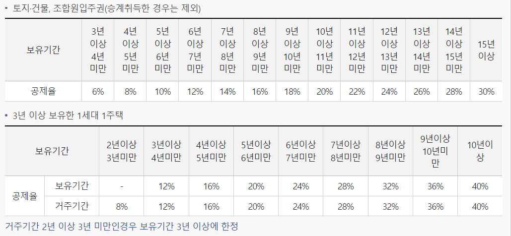 아래 표는 장기 보유 특별 공제율입니다. 표를 확인해보시기 바랍니다.