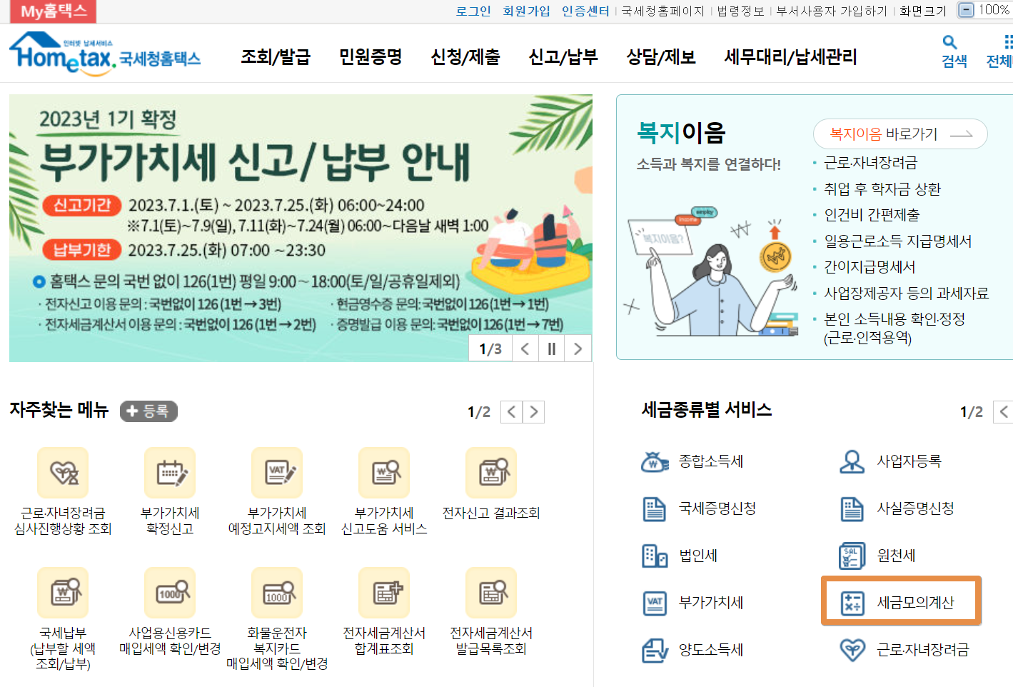 계산기를 클릭하시면 로그인 하지 않아도 간편 계산을 진행해볼 수 있습니다.