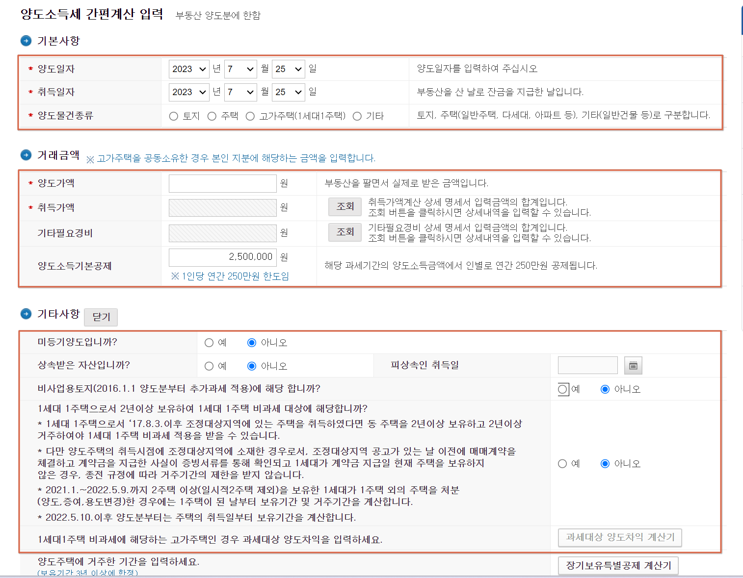 양도세 자동계산 하기