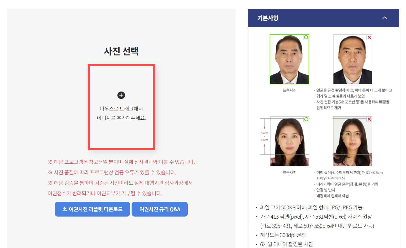 또한 사진 규정에 맞게 촬영했다면, 외교부에서 제공하는 사진 검증 서비스를 활용해서 사진 규격에 맞게 촬영했는지 체크해볼 수도 있습니다.