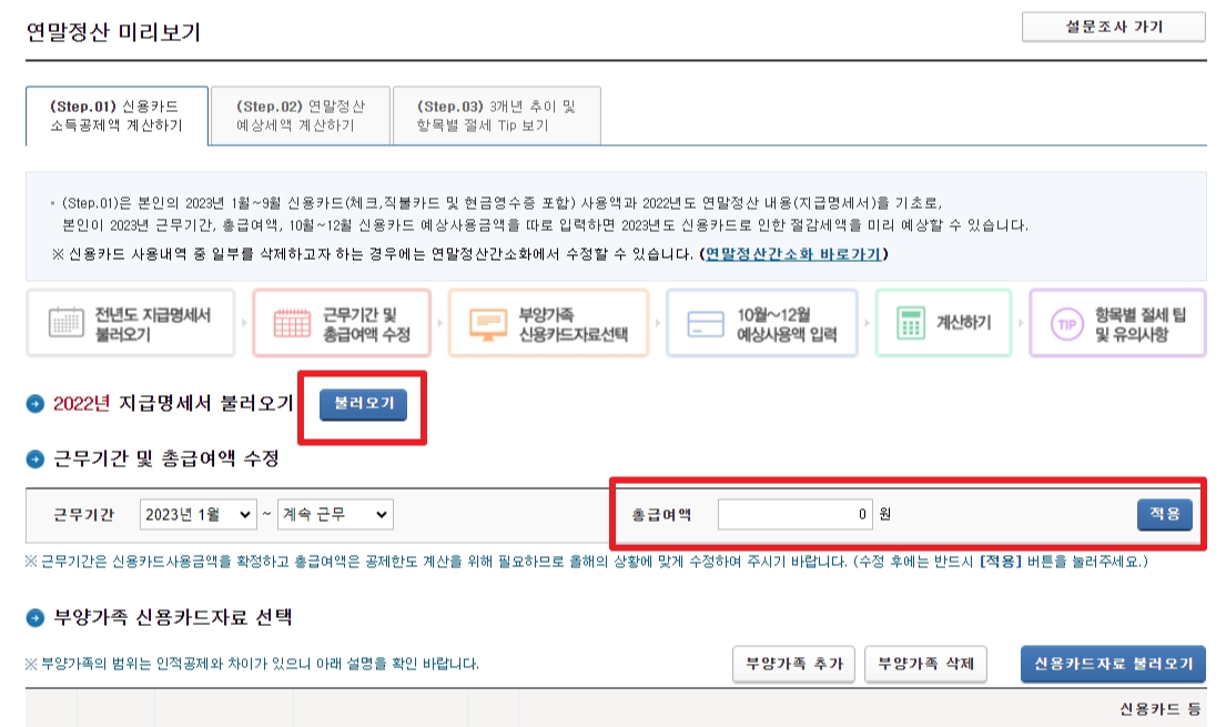 아래 빨간색박스 대로 체크하여 예상세액을 계산해보시기 바랍니다.