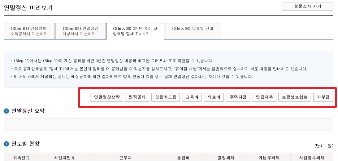 3. 3개년 추이 및 항목별 절세 팁 보기
