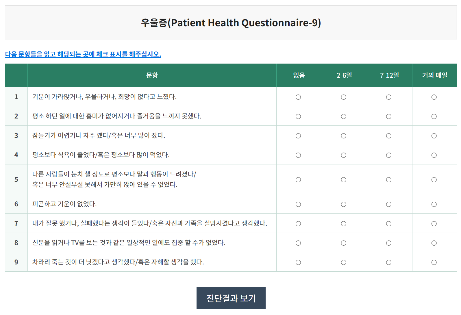 우울증 자가진단