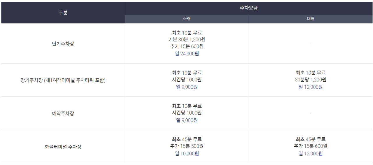 인천공항 장기주차 주차요금