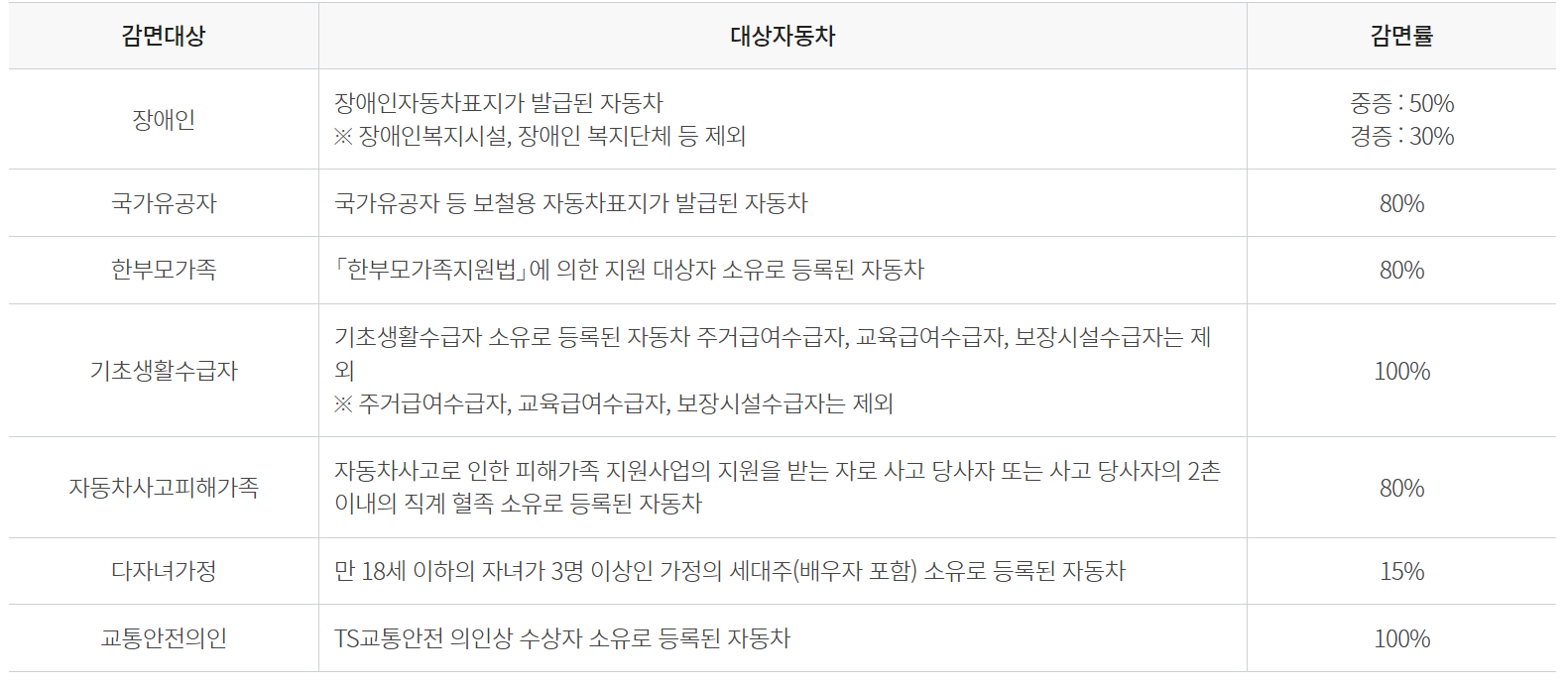 아래는 자동차검사 수수료 감면대상자입니다.