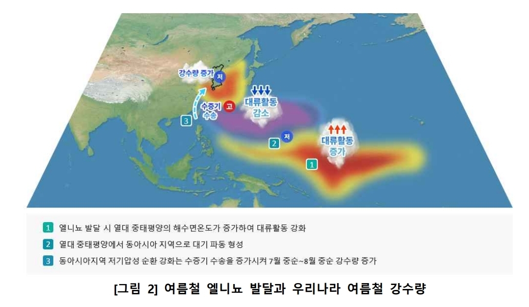 올해 기상청에서는 엘리뇨 현상으로 인해 장마기간 동안의 큰 강수량을 예보해 왔습니다. 이는 평년보다 높은 바다의 온도 때문인데요 이 것이 엘리뇨 현상으로 이어지고 있는 양상을 보이기 때문입니다.