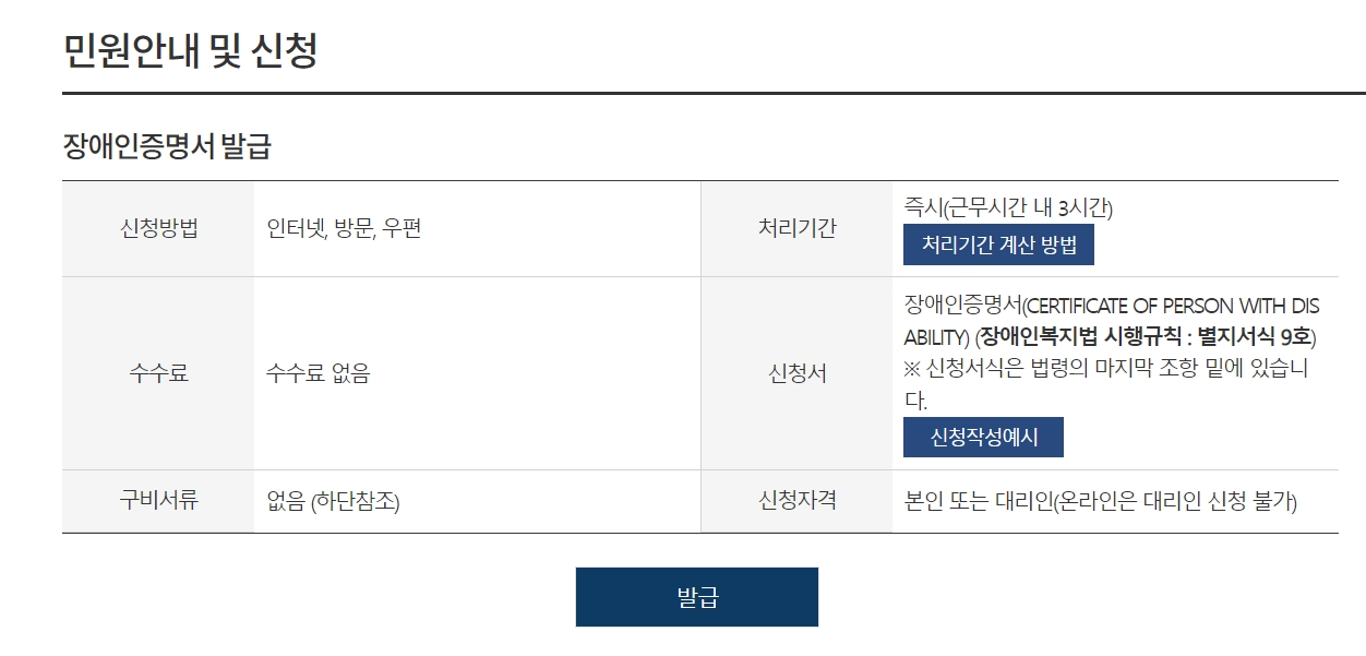 인터넷 또는 방문과 우편을 통해 장애인 증명서를 발급받을 수 있습니다. 인터넷을 통할 경우 정부 24 홈페이지를 활용하시면 되며 바로 갈 수 있는 링크를 넣어놓았으니 간편하게 이용하시기 바랍니다.