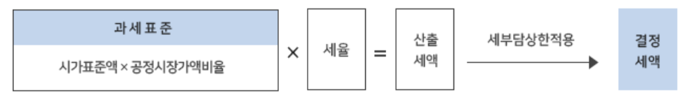 위와같이 과세표준을 구한 뒤 세율을 곱하여 산출세액을 계산하면되지만, 지난해보다 더 재산가액이 많이 올랐을 경우에도 부담을 덜기 위하여 세부담 상한적용제를 도입하여 결정 세액을 계산합니다.