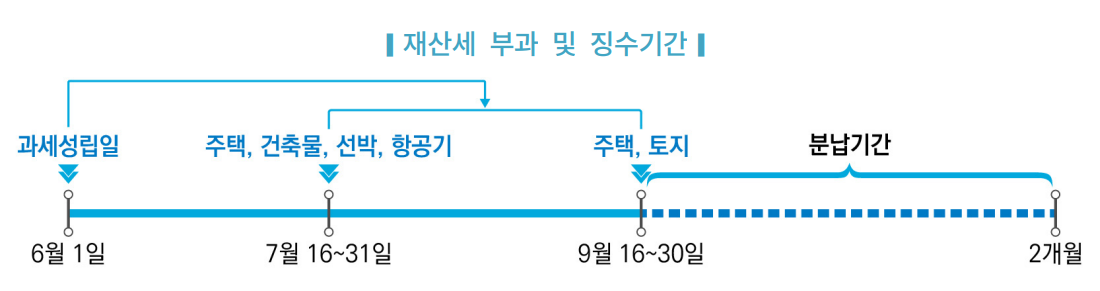 재산세는 매년 2번 납부합니다. 어떤 항목이냐에 따라 다르지만, 보통 부동산을 많이들 갖고 계시기 때문에 부동산 재산세가 20만원 이상일 경우 2회에 걸쳐서 납부, 그 이하라면 한 번에 7월에 재산세를 내시면 됩니다.