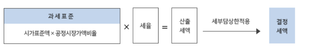 재산세를 계산하는 방법은 아래와 같습니다. 과세표준에 세율을 곱한 산출 세액에서 결정세액을 산출해 내는 것인데요,
