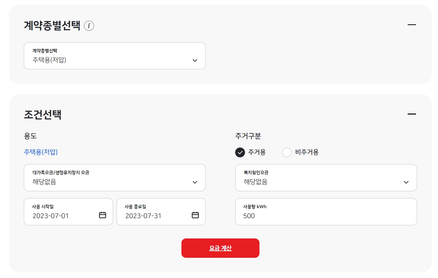 월 500kWh를 사용했다고 가정한 뒤 계산기를 돌려보도록 하겠습니다.