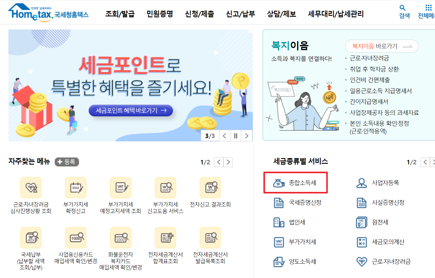 우리가 종합소득세를 내야하는지 아닌지가 궁금하신 분들은 확인할 수 있는 방법에 따라 체크해 보시기 바랍니다. 먼저 홈택스로 이동합니다.