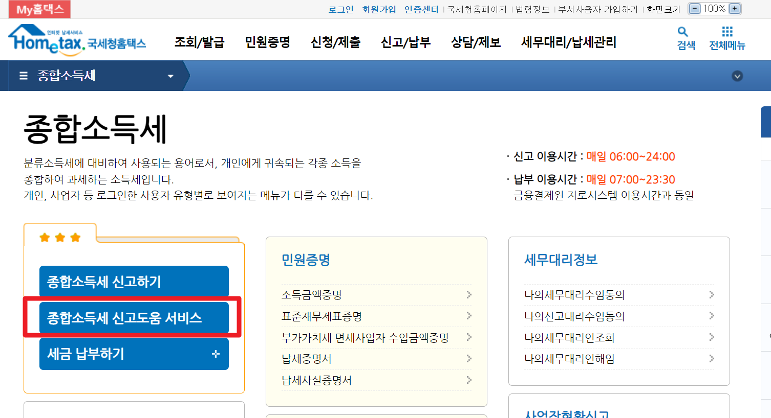 종합소득세 신고대상 확인방법