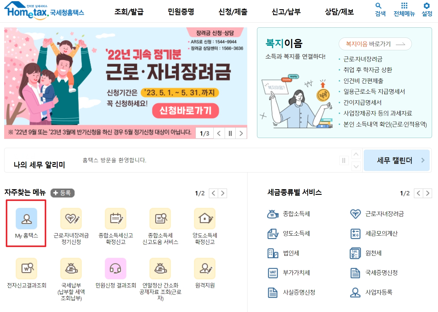 해당 서비스는 어플인 '손택스'로도 가능하며, 앱을 받으신 후 로그인 후 간편하게 조회해보시기 바랍니다.
