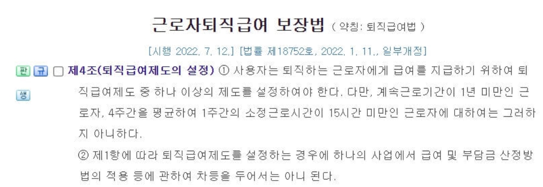 퇴직금 지급 기준은 근로자퇴직급여 보장법에 의해 지급 기준 명시되어있는데요