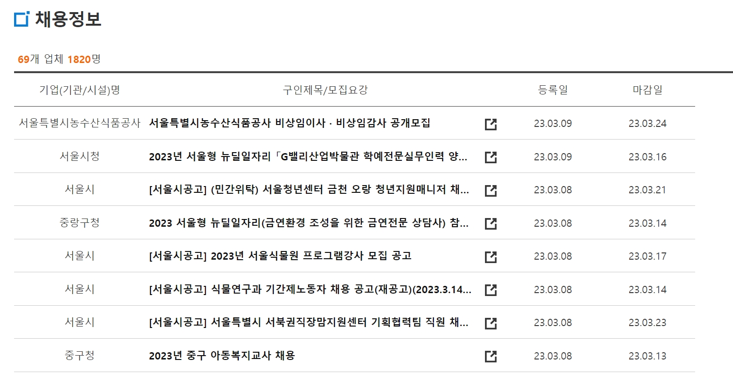 보통 아래와 같이 서울특별시 홈페이지로 들어갈 경우 채용 정보를 확인하실 수 있습니다. 서울 공공근로로 바로 이동하실 분들은 아래 버튼을 클릭해 보시기 바랍니다.
