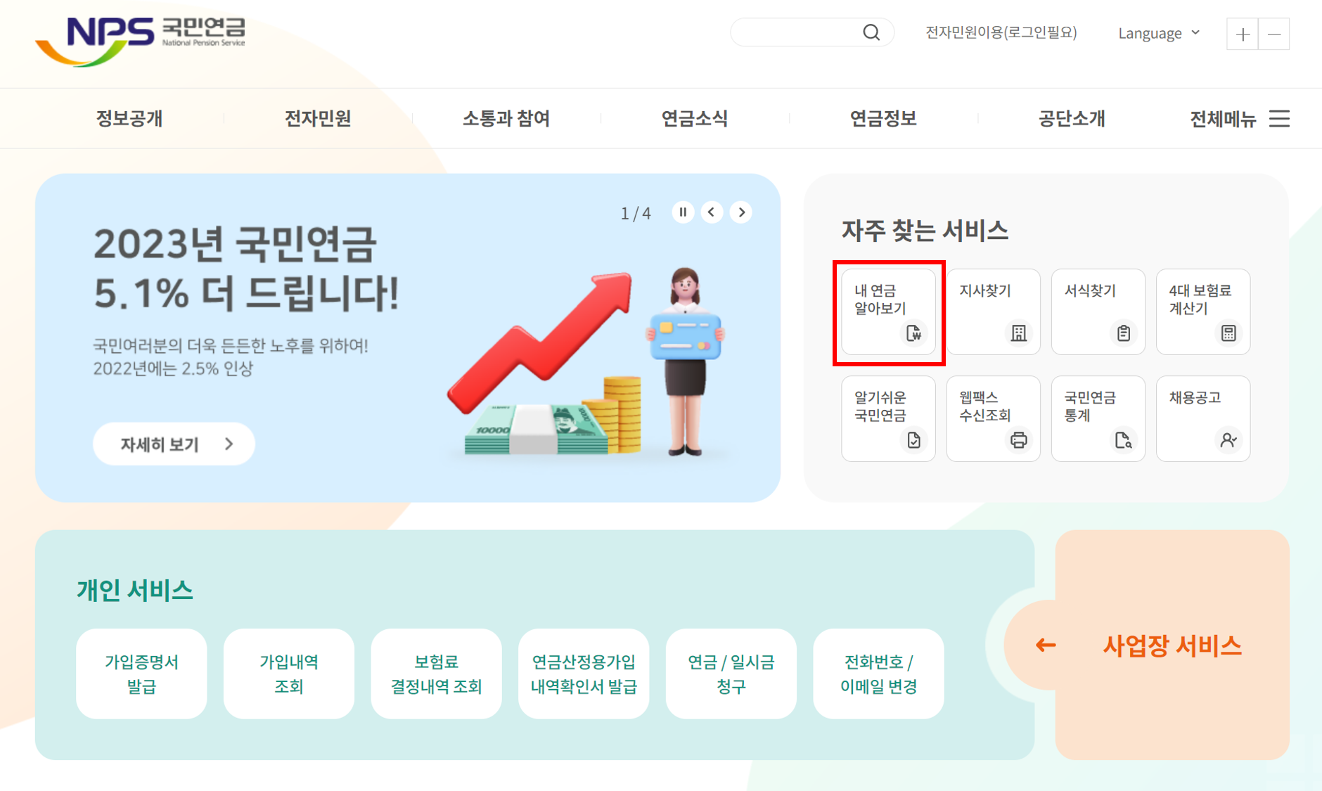 내 국민연금 수령나이 및 예상수령액 확인하기