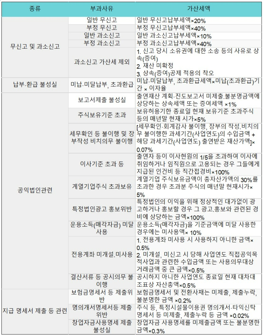 아래표는 무신고하거나 과세신고할 경우 증여가산세로 확인하여 제대로 납부하는 것을 권장드립니다.