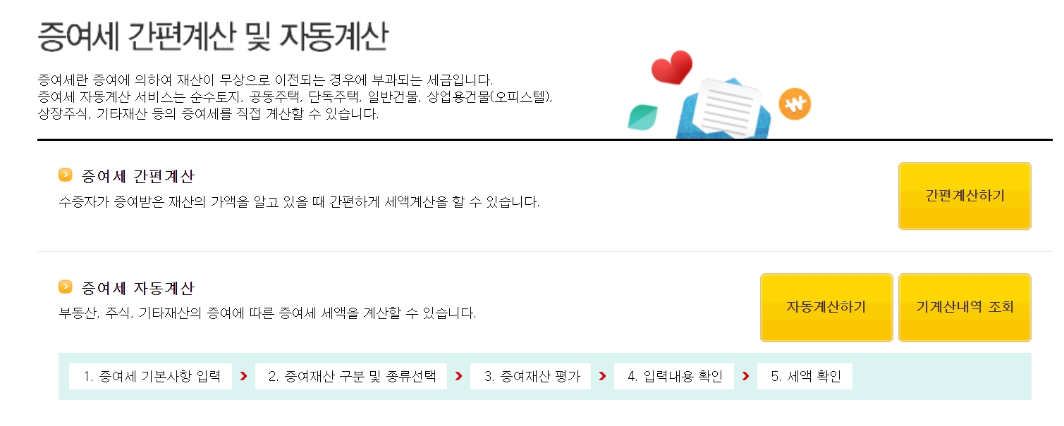 국세청 홈페이지에서는 증여세에 필요한 기본 사항 등을 입력하면 간편하게 증여세를 계산할 수 있습니다.