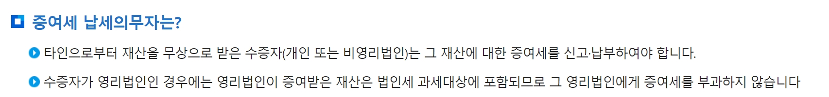 타인으로받은 재산을 증여받았을 경우 증여받은 자가 부담하는 세금을 말합니다.