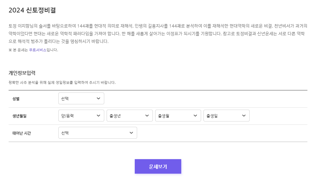 토정비결과 신년운세 등 모든 서비스를 무료로 확인해볼 수 있으며, 그 운세의 내용이 잘 맞춘다는 이야기가 많아 저도 해마다 이용하고 있습니다.
